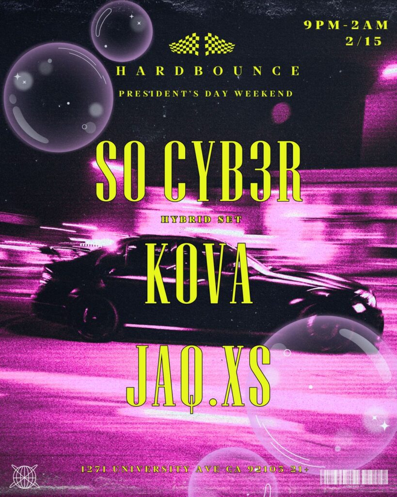 On Sunday February 15th, from 9PM–2AM, we’re bringing a full throttle lineup to 1271 University Ave, San Diego, CA 92103 (21+).