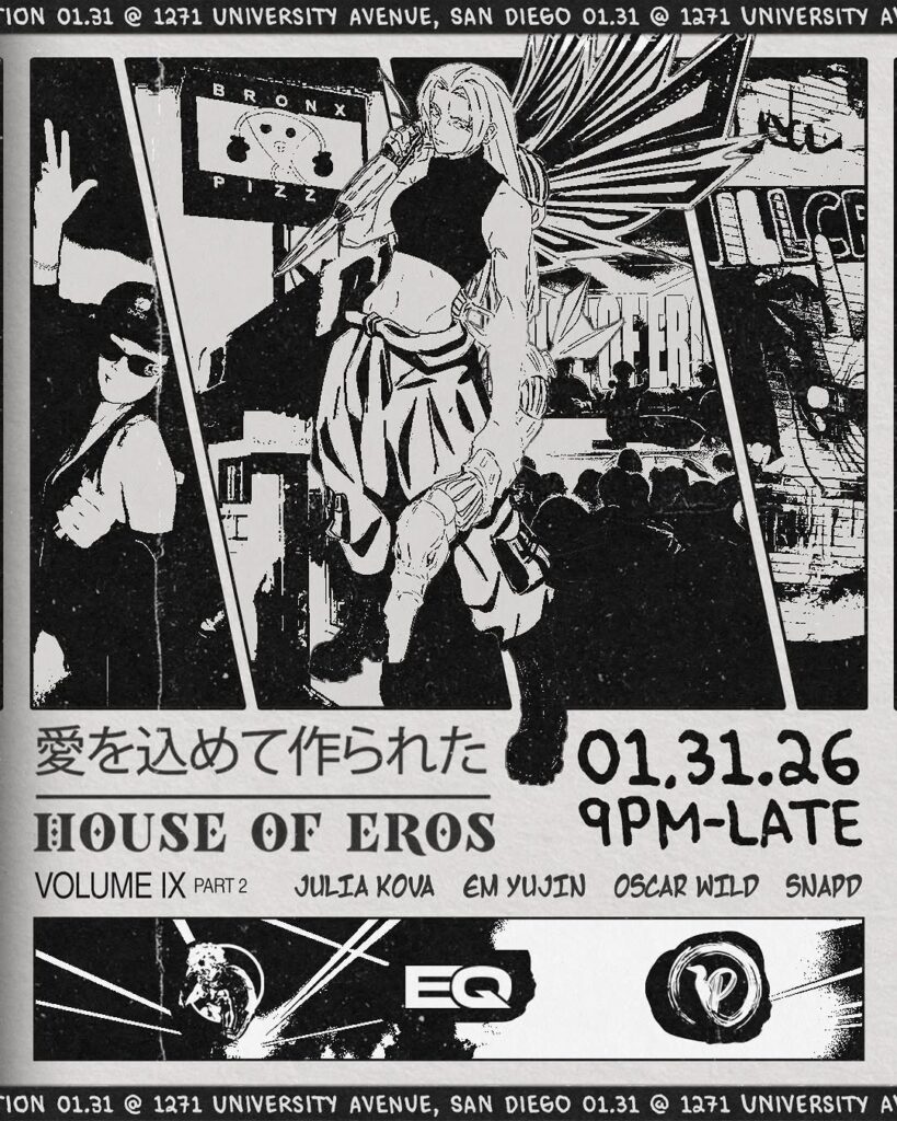 this event will take place in san diego and will feature JULIA KOVA, EM YUJIN, OSCAR WILD, AND ????